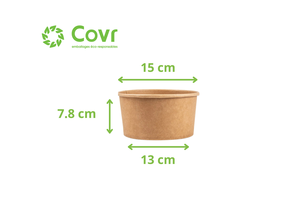 Combo Bols Kraft/Saladiers Carton brun 1300ml + couvercles rPET