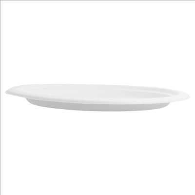 Quel volume de service permettent ces plateaux ovales bagasse biodégradables pour restauration en format 26,3x19,9 cm ?