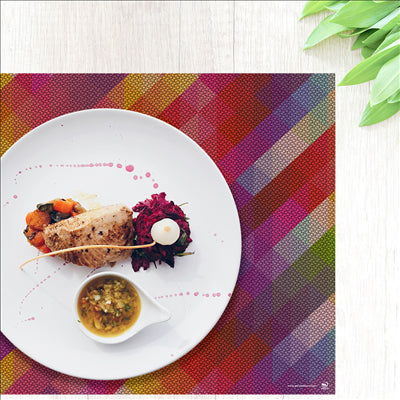 Au quotidien, vous pouvez utiliser ces sets de table pour structurer rapidement vos dressages tout en donnant une identité visuelle claire à votre salle. Leur design géométrique en quadrichromie apporte une touche moderne, idéale pour un bistrot, un restaurant d’entreprise ou un service de restauration rapide soigné. Le gaufrage en continu améliore la présentation et donne une impression qualitative dès l’installation à table. Ils protègent efficacement la surface tout en offrant une mise en place rapide entre deux services, pratique lorsque vous avez des pics d’affluence et peu de temps pour redresser.