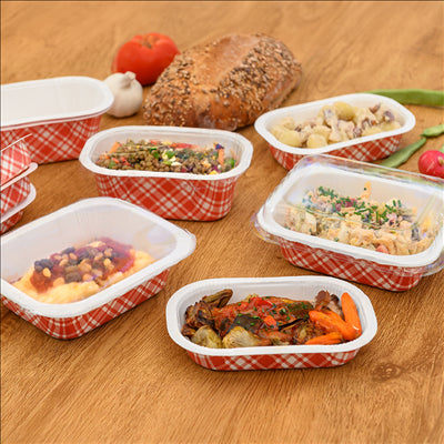 En situation réelle, ces barquettes repas sont particulièrement adaptées au transport de plats préparés à emporter, où l’étanchéité et la présentation comptent autant que la praticité. Le thermo-scellage hermétique limite les déversements pendant la livraison et protège la texture des aliments, même si vos préparations contiennent des sauces. Le décor vichy apporte un rendu visuel soigné, apprécié en vente à emporter ou en service traiteur. Vous pouvez ainsi proposer des plats prêts à réchauffer directement chez le client, sans transvaser, ce qui fluidifie son expérience et valorise votre offre.