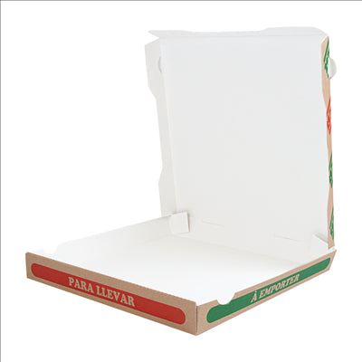 Boîtes à pizza en carton ondulé microcanal. 3 couches de papier 100% vierge. Couvercle à charnière. Avec la technologie THEPACK, les emballages deviennent plus résistants, plus légers et permettent de maintenir la température interne plus longtemps. L'ondulation à microcanaux confère une plus grande rigidité aux contenants et réduit la quantité de papier utilisée dans leur fabrication. Tous les produits THEPACK sont résistants à la graisse et à l'humidité.