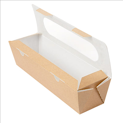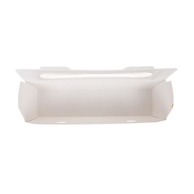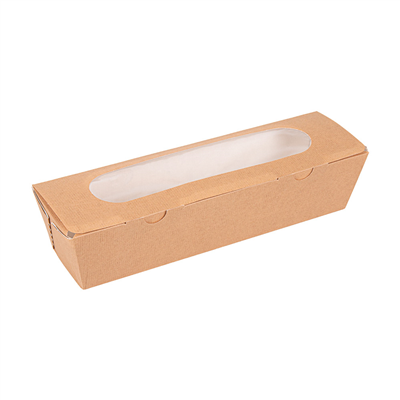 Au quotidien, ces boîtes sandwich s’intègrent très bien dans une organisation de restauration rapide, sandwicherie ou traiteur. Vous pouvez y glisser vos baguettes garnies déjà préparées, la fenêtre offrant une excellente visibilité pour la vente en vitrine ou en comptoir. La fenêtre OPP est facile à retirer si vous devez adapter la présentation ou trier les matériaux après usage. C’est particulièrement utile pour les services à emporter ou la livraison de plateaux déjeuner, où l’identification rapide du contenu fait gagner du temps à vos équipes comme à vos clients.