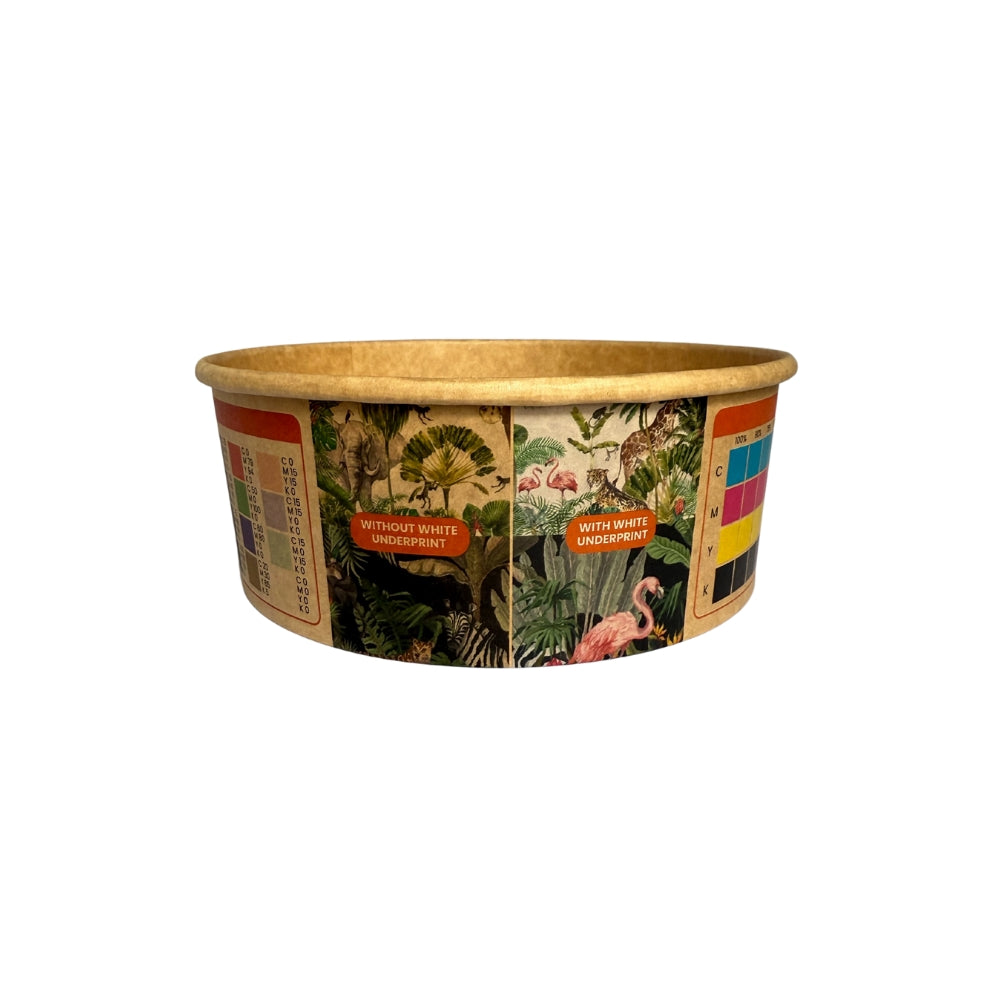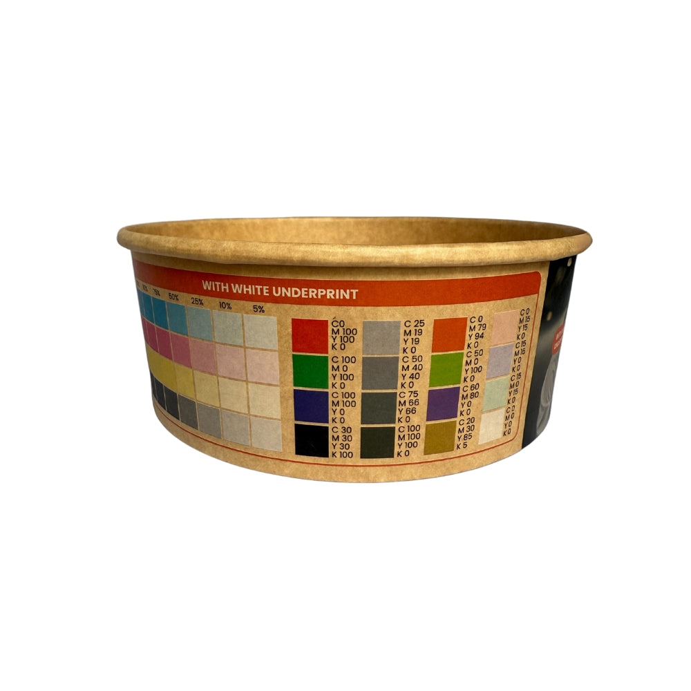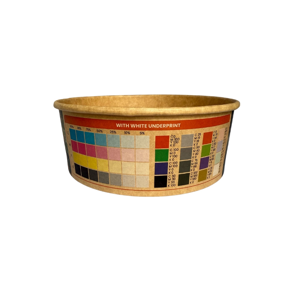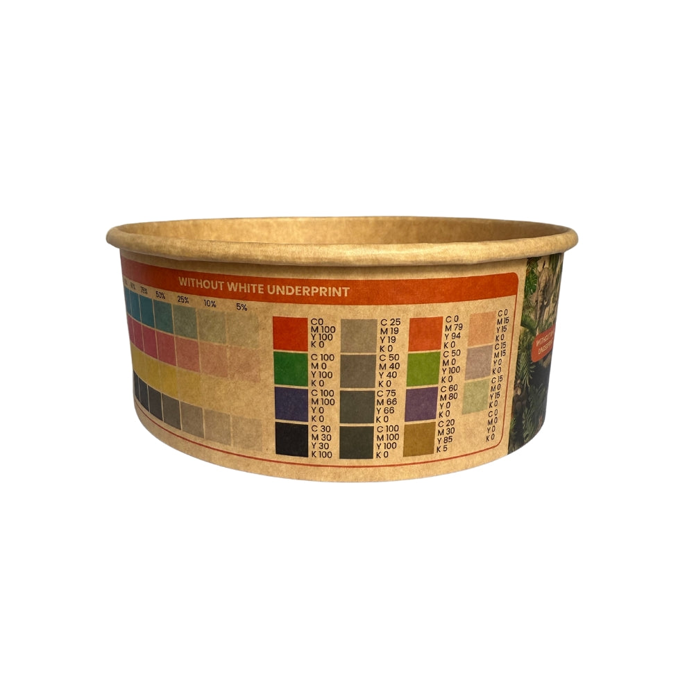 Ce bol rond en carton kraft/blanc personnalisé est conçu pour accueillir des plats froids ou chauds dans le respect des exigences professionnelles de la restauration et de la vente à emporter. Il est fabriqué à partir de carton apte au contact alimentaire.