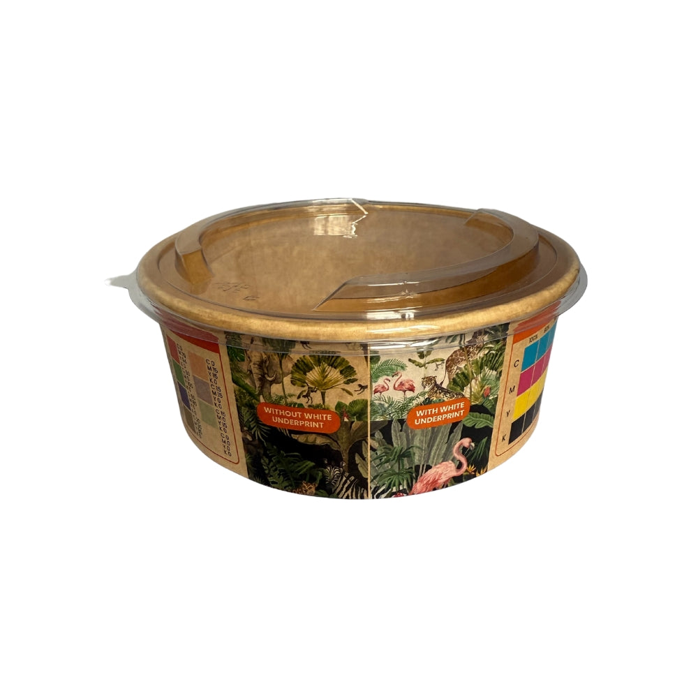 Ce bol est compatible avec le couvercle R-PET ⌀ 184 mm (COCOURP40P), ainsi que le couvercle PP ⌀ 184 mm (COCOUPP40P) et le couvercle en carton ⌀ 184 mm. Le couvercle en carton (brun/kraft) est également personnalisable, les tarifs sont disponibles sur demande.