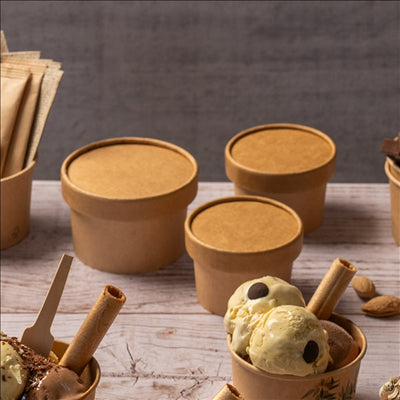 Couvercles en carton pour pots à glaces. Carton avec couche PE. Permettent un transport en sécurité et une bonne conservation des produits à l'intérieur. Disponibles en différents couleurs et capacités. Poids par unité : 1.4g Certifications : Matériau en plastique apte au contact alimentaire., Biodégradable, Apte au contact alimentaire., ISO 9001, Registre Sanitaire des Entreprises Alimentaires, Bonnes pratiques de fabrication, FSC®
