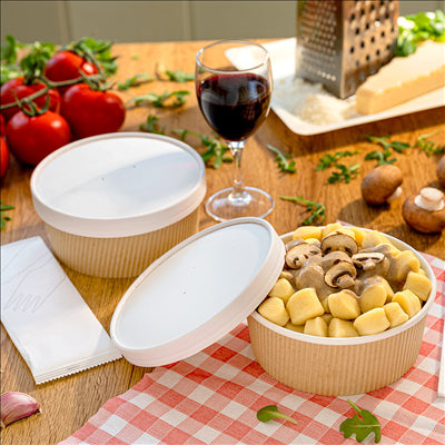 En situation réelle, vous pouvez utiliser ces bols soupe pour la vente à emporter de soupes, nouilles, plats mijotés ou préparations à emporter nécessitant de rester chaudes plus longtemps. La double paroi ondulée maintient la température tout en évitant que vos clients ne se brûlent les mains. Le couvercle renforce la sécurité durant le transport et limite les risques de renversement. C’est idéal pour les restaurants, bars à soupe ou concepts de street food qui ont besoin d’un emballage chaud fiable, biodégradable et adapté à un usage professionnel intensif.