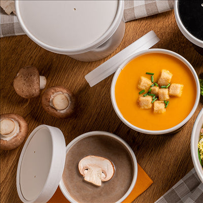 Ce modèle est conçu pour gérer sans stress vos préparations chaudes comme froides. Les bols soupe sont en carton double paroi avec une couche de PE sur les deux faces, ce qui améliore nettement la tenue aux liquides et à la chaleur. Cette structure limite la transmission de chaleur vers les mains, vos équipes manipulent donc plus sereinement les portions brûlantes. Le couvercle assorti possède un trou d’aération pour laisser s’échapper la vapeur, pratique pour éviter la condensation excessive. Vous obtenez ainsi un conditionnement stable, confortable à prendre en main, adapté à un service professionnel soutenu.