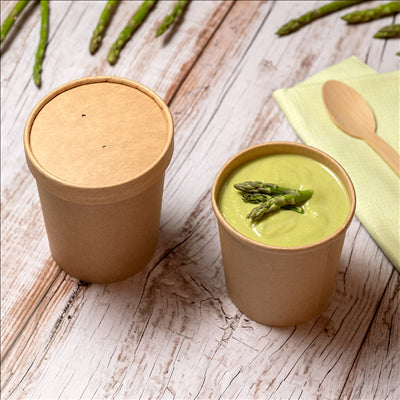 COMBO RÉCIPIENTS + COUVERCLES 480 ML - 16 oz 340 + 18 PE G/M2 Ø 9,7/7,5x10 CM NATUREL KRAFT (250 UNITÉS) - REF. 221.86
