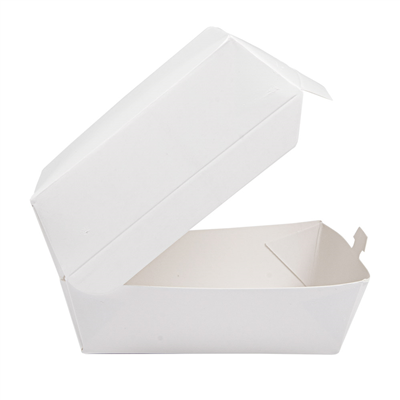 Récipients coquille pour hamburger en taille mini. Fabriqués en carton folding ingraissable de 250g/m2. Poids par unité : 7.9g Certifications : Biodégradable, Apte au contact alimentaire., ISO 9001, Registre Sanitaire des Entreprises Alimentaires, Bonnes pratiques de fabrication
