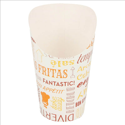 Vous gagnez en confort de portion avec ces barquettes frites de 16 oz, soit environ 480 ml. Leur format Ø8,5 x 13,5 cm permet de servir une portion généreuse tout en gardant une bonne prise en main pour la vente à emporter. Conditionnées par 50 unités, elles sont pratiques pour tester un nouveau format ou équiper un petit point de vente sans immobiliser trop de budget. Ce conditionnement facilite aussi le stockage et le réassort rapide en cuisine ou au comptoir.