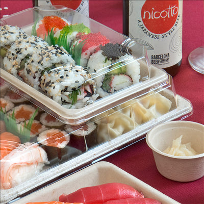 Les couvercles transparents de la gamme Bionic permettent la visibilité et la préservation du produit de l'intérieur. À combiner avec les récipients de la gamme Bionic: produits fabriquées aux 100% de pulpe de cellulose naturelle extraite de fibres de canne à sucre. Poids par unité : 7.5g Certifications : Matériau en plastique apte au contact alimentaire., Apte au contact alimentaire., ISO 9001, Registre Sanitaire des Entreprises Alimentaires, Bonnes pratiques de fabrication