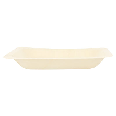 Récipients jetables en bois de peuplier avec finition laminée en pin, au design soigné et naturel.