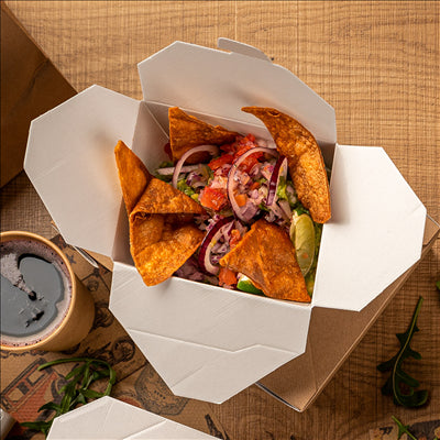 Ce modèle est conçu en carton nano-micro, la plus petite ondulation disponible pour le carton ondulé, ce qui lui donne une rigidité nettement supérieure tout en restant léger. Vous avez ainsi une boîte qui supporte bien le remplissage et la manipulation, même avec des plats généreux. La technologie nano-micro améliore aussi l’isolation thermique : vos préparations restent chaudes plus longtemps, pratique pour la vente à emporter. Enfin, les certifications alimentaires, dont l’aptitude au contact alimentaire et la biodégradabilité, vous offrent une vraie tranquillité d’esprit pour un usage professionnel.