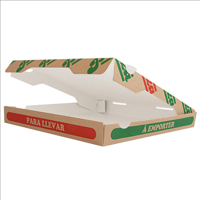 Boîtes à pizza en carton ondulé microcanal. 3 couches de papier 100% vierge. Couvercle à charnière. Avec la technologie THEPACK, les emballages deviennent plus résistants, plus légers et permettent de maintenir la température interne plus longtemps. L'ondulation à microcanaux confère une plus grande rigidité aux contenants et réduit la quantité de papier utilisée dans leur fabrication. Tous les produits THEPACK sont résistants à la graisse et à l'humidité.