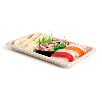 Ce modèle est conçu en pulpe de cellulose naturelle issue de fibres de canne à sucre, donc sans plastique ajouté. La matière de ces boîtes sushi est entièrement biodégradable, ce qui vous permet de proposer une solution d’emballage alignée avec vos engagements environnementaux. Elles sont certifiées aptes au contact alimentaire et répondent à des normes reconnues comme ISO 9001, Registre Sanitaire des Entreprises Alimentaires et Bonnes pratiques de fabrication. Vous pouvez ainsi servir vos préparations en toute sérénité, avec un emballage à la fois sûr pour vos clients et cohérent avec une démarche durable.