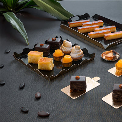 En situation réelle, ces emballages pâtisserie vous servent surtout à sublimer vos créations tout en restant pratique en service. Leur finition or/noir apporte une touche luxueuse sur un comptoir, un buffet ou lors d’un événement traiteur. Vous pouvez y disposer directement vos entremets, gâteaux décorés ou assortiments de mignardises, puis les manipuler facilement grâce aux rabats qui sécurisent légèrement le maintien. C’est idéal si vous voulez offrir à vos clients une présentation élégante et cohérente avec une image haut de gamme, sans multiplier les supports différents en arrière-boutique.