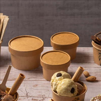 Pour ces couvercles carton pots glace 240 ml biodégradables, quelle taille et quel conditionnement prévoir ?