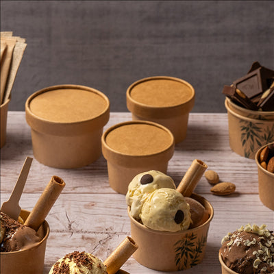 Ce modèle est conçu spécialement pour un usage alimentaire sécurisé, ce qui est idéal si vous servez des glaces à emporter ou à conserver. Les couvercles sont en carton avec une couche de PE, ce qui assure une barrière fiable contre l’humidité et les fuites. Ils disposent de certifications précises : matériau en plastique apte au contact alimentaire, conformité au registre sanitaire des entreprises alimentaires, bonnes pratiques de fabrication et norme ISO 9001. Vous bénéficiez aussi d’une certification FSC® et de la mention biodégradable, ce qui vous permet de rassurer vos clients sur l’aspect hygiénique et responsable.