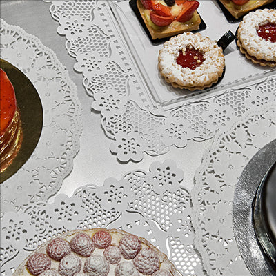 Au quotidien, ces dentelles sont parfaites pour sublimer vos présentations sans compliquer votre service. Vous pouvez les utiliser sous des gâteaux, entremets, assortiments de petits fours, plateaux de fromages ou de charcuterie, afin de créer un contraste élégant avec la nourriture. Leur finition brodée et métallisée donne immédiatement un aspect plus raffiné à vos buffets, vitrines ou plateaux de room service. C’est particulièrement utile si vous accueillez une clientèle sensible au visuel et à l’hygiène, car la dentelle crée une barrière esthétique entre la vaisselle et les aliments.