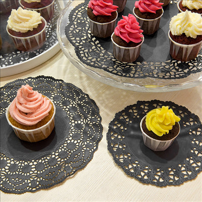 Pour un service traiteur, quelle quantité offre un lot de dentelles rondes noires papier 30,5 cm ?