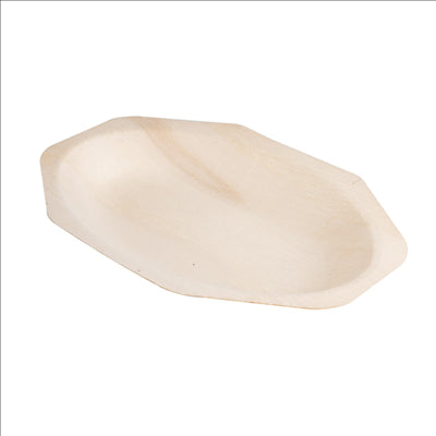 Récipients jetables en bois de peuplier avec finition laminée en pin, au design élégant et raffiné.