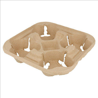 Ce modèle est moulé en cellulose à partir de fibres de papier et carton recyclés, puis traité pour résister à l’eau. Vous pouvez donc y installer aussi bien des boissons chaudes que froides sans qu’il se déforme ou se détrempe pendant le transport. La structure rigide maintient les gobelets bien stables, ce qui limite les risques de renversement, même quand le plateau est rempli. Pour vous, cela signifie un support fiable pour les services à emporter, tout en restant cohérent avec une démarche éco-responsable et apte au contact alimentaire.