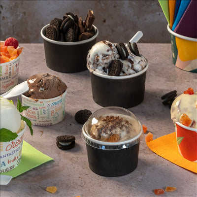POTS À GLACES 150 ML 250 + 18PE G/M2 Ø 8,5x4,5 CM NOIR CARTON (2000 UNITÉS) - REF. 226.54