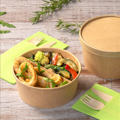 Les saladier en Naturel Kraft, rigides et étanches, conviennent aux aliments chauds et froids. Ce saladier repas en Naturel Kraft est parfait pour accueillir les salades, plats en sauces en tout genre, plats à base de riz, pâtes, nouilles asiatiques. Les aliments froids tels que les salades de pates ou de riz y sont également les bienvenus. Préparez de délicieuses recettes de Poke Bowl avec du poisson cru, des fruits, des légumes et du riz !