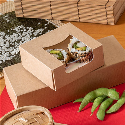 Quelles dimensions et quel conditionnement pour des boîtes sushi carton nano-micro fenêtre 10x10 ?