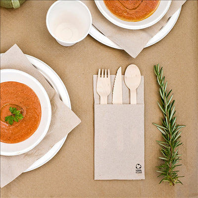 Au quotidien en service, ces serviettes se prêtent très bien aux restaurants, bistrots, hôtels, traiteurs ou concepts de restauration engagés dans une démarche durable. Le pli kangourou permet de glisser proprement couteau, fourchette et serviette ensemble, idéal pour les dressages soignés, les buffets ou les services rapides où vous voulez gagner du temps tout en restant élégant. Leur caractère biodégradable et écologique convient particulièrement aux établissements qui souhaitent réduire leur impact environnemental sans sacrifier la présentation de table ni la praticité pour les équipes en salle.