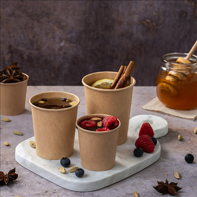 GOBELETS BOISSONS CHAUDES 1 PAROI 180 ML - 6 oz 260 + 18 PE G/M2 Ø7,2/5,3x7,8 CM MARRON CARTON (1000 UNITÉS) - REF. 232.99