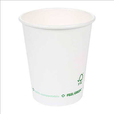 Gobelets carton sans plastique, 100% compostables, issus de notre gamme de produits écologiques « Feel Green ». Avec ces gobelets en carton, adaptés pour les boissons chaudes et froides, vous pouvez servir des cafés, des infusions et toutes sortes de boissons dans votre bar ou restaurant. Ils sont également parfaits pour les plats à emporter, les célébrations en plein air, les terrasses, les barbecues, les fêtes... sans avoir à se soucier de la casse ou d’avoir à les nettoyer. Les gobelets « sans plastique » peuvent être recyclés aux côtés du papier et du carton, car aucun plastique n’a été utilisé pour les fabriquer. C’est notre gamme la plus écologique de gobelets jetables, tous durables et respectueux de l’environnement.