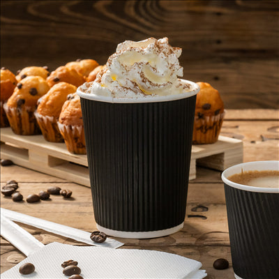 GOBELETS BOISSONS CHAUDES DOUBLE PAROI 240 ML - 18 oz 280 + 250 + 18 PE G/M2 Ø8/5,6x9,2 CM NOIR CARTON (1000 UNITÉS) - REF. 178.38