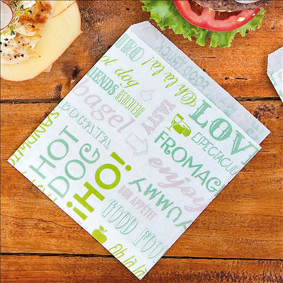 Les sachets ouverts sur 2 côtés sont parfaits pour des hamburgers, kebabs, pizzas, hot dog et crêpes. Indispensables pour les négoces de take away et street food. Leur ouverture sur deux des quatre côtés du sachet permet d'introduire les produits à l'intérieur de manière simple et rapide, en optimisant le temps de travail. Le traitement ingraissable qui s'applique au papier emballage empêche le transfert d'huiles et graisses, ce qui évite les taches et les gouttes. Certifications : Biodégradable, Encre compostable, Apte au contact alimentaire., ISO 9001, Registre Sanitaire des Entreprises Alimentaires, Bonnes pratiques de fabrication, Conformité REACH, FSC®, Sans PFOS - PFOA