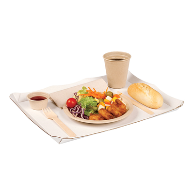 En situation réelle, ces plateaux trouvent facilement leur place dans un self-service, une pâtisserie, un corner deli ou un buffet froid. Vous pouvez les utiliser pour présenter des parts de gâteaux, viennoiseries, sandwichs, salades ou assortiments salés. La micro-cannelure offre une bonne tenue, idéale lorsque les clients se servent eux-mêmes. Comme cet article est personnalisable, vous pouvez aussi envisager d’y ajouter votre identité visuelle pour renforcer votre image tout en gardant une solution biodégradable. Cela convient bien aux établissements cherchant à concilier praticité, hygiène et communication soignée.