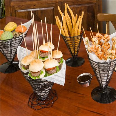 Quelles dimensions choisir pour un présentoir panier acier noir pour frites et tapas ?