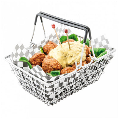 Quelles dimensions et quel conditionnement pour des mini paniers apéritif American style en acier chrome ?