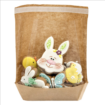INNOVATIVE FOOD PACKAGING SOLUTIONS. Pour repas à emporter, brochettes, croquettes, sushis, légumes, fruits, viennoiserie, sandwiches.... Produit scellable, conservation maximale. Sachets avec base et fenêtre. Sa base permet d’exposer le produit dans un “display” attirant. La distance entre les soufflets est très haute, permettant d’insérer les produits facilement à l’intérieur et les fermer après avec une etiquette autocollante si nécessaire. Occupe moins d'espace de stockage par rapport aux emballages en plastique. Ouverture facile et idéale pour la vente à emporter. Tout produit frit, croquettes, tempura, légumes, fruits, champignons, fruits secs. Certifications : Matériau en plastique apte au contact alimentaire., Apte au contact alimentaire., ISO 9001, Registre Sanitaire des Entreprises Alimentaires, Bonnes pratiques de fabrication