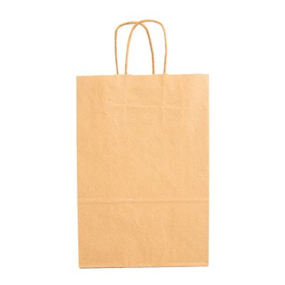 Sacs avec poignées torsadées du style cordon, d'usage fréquent, très pratiques, couleur kraft naturel, produit personnalisable avec le logo de votre entreprise Certifications : Biodégradable, Apte au contact alimentaire., ISO 9001, Registre Sanitaire des Entreprises Alimentaires, Bonnes pratiques de fabrication, Conformité REACH, Code PEFC: