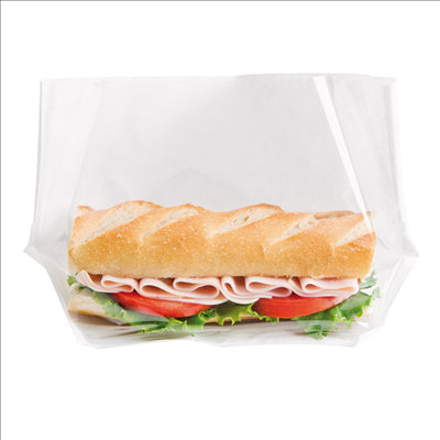 Vous gagnez en clarté en sachant que ce modèle est proposé en conditionnement de 100 unités, pratique pour gérer vos besoins professionnels. Chaque sachet mesure environ 27 cm de long, avec une largeur utile d’environ 16 cm, ce qui laisse une belle place pour vos sandwichs, pâtisseries ou portions de plats cuisinés. La base élargie et les soufflets généreux offrent un vrai volume intérieur, sans prendre trop de place en stockage. Ce format intermédiaire convient bien aux vitrines de boulangerie, snacks ou épiceries fines recherchant un emballage polyvalent.