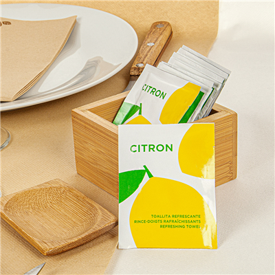 En situation réelle, vous les proposerez surtout en fin de repas, dès qu’il y a des aliments à manger avec les doigts : fruits de mer, poulet, tapas, street food, plateaux à partager. Cette pièce s’intègre parfaitement dans un service de table soigné : vous la placez sur la soucoupe ou vous la distribuez avec l’addition pour une dernière touche d’attention. Le parfum léger de citron apporte une sensation de propreté sans être envahissant. C’est une petite attention qui renforce l’expérience client, tout en restant compatible avec une démarche plus responsable grâce à son caractère biodégradable.