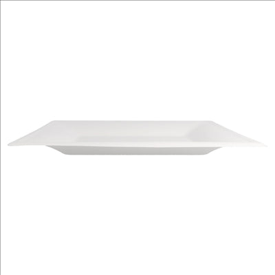 Quel est le format exact de ces assiettes carrées biodégradables pour service de restauration ?