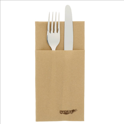 En situation réelle, ces serviettes s’intègrent parfaitement à un service en terrasse, en salle ou lors de buffets et réceptions. Vous glissez simplement les couverts dans la poche formée par le pliage kangourou, ce qui donne immédiatement une table plus soignée et organisée. Cette pièce est pensée pour les établissements Horeca qui veulent une présentation élégante sans passer par la blanchisserie. Elle convient aussi bien aux menus du midi qu’aux dîners plus habillés. Vous optimisez ainsi le dressage, tout en offrant une expérience haut de gamme et hygiénique à vos convives.