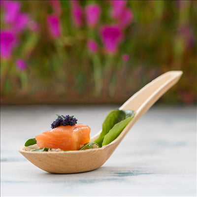 Très agréables au toucher. Sont une grande alternative aux ustensiles faits d'autres matériaux. Les couverts en bambou sont robustes et forts, aptes pour tous types d'aliments froids ou chauds, comme glaces, végétaux, viandes, gâteaux et tapas frites, entre d'autres. Idéal pour tout type d'évènements: cet ustensile en bambou peut s'utiliser pour pique-niques dehors, fêtes, anniversaires, mariages, réunions de famille... Poids par unité : 2.15g