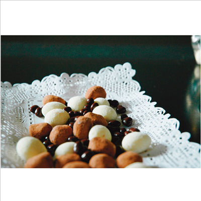 En situation réelle de service, ces Dentelles trouvent tout leur intérêt pour sublimer vos présentations sans compliquer votre organisation. Leur couleur blanche brodée et métallisée met en valeur pâtisseries, mignardises, pièces cocktail ou parts de gâteaux, en créant un contraste propre et raffiné. Vous pouvez les disposer directement sur des plateaux de buffet, des plateaux traiteur ou sous des gâteaux entiers. Elles sont idéales pour des contextes professionnels : restauration, traiteur, boulangerie-pâtisserie ou événements, dès que vous souhaitez une présentation soignée, alignée avec une démarche plus responsable grâce à leur caractère biodégradable.