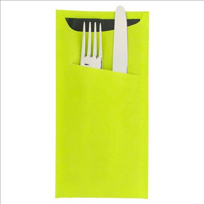 Quelle taille font les sacs couverts avec serviette jetable vert anis en cellulose pour la table ?