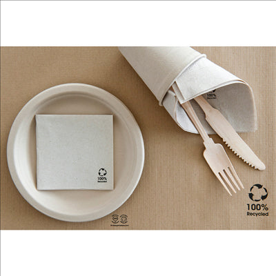Ce modèle est pensé pour vous offrir une solution vraiment propre, autant pour l’environnement que pour vos clients. Les serviettes sont fabriquées en matière première 100 % recyclée, sans ajout de fibres vierges, et imprimées avec des encres compostables. Elles sont totalement biodégradables et ne génèrent pas de déchets toxiques ou polluants. Vous bénéficiez en plus d’un certificat Ecolabel, d’une conformité REACH, d’une certification FSC® et d’une aptitude au contact alimentaire, ce qui vous permet de les utiliser en restauration en toute tranquillité.