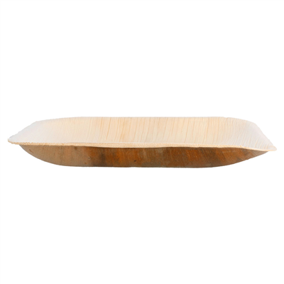 Ce modèle est entièrement fabriqué à partir de feuilles d’arbre Areca, un matériau 100 % naturel, sans ajout de plastique ni revêtement chimique. Les feuilles sont simplement nettoyées, séchées puis pressées, ce qui les rend aptes au contact alimentaire tout en restant biodégradables. Vous pouvez y servir des préparations chaudes ou froides en toute confiance, la matière ne dégage pas de substances toxiques. Une fois utilisées, ces assiettes se décomposent rapidement, sans polluer, ce qui vous permet de proposer une solution de service écoresponsable à vos clients, tout en respectant vos engagements environnementaux.