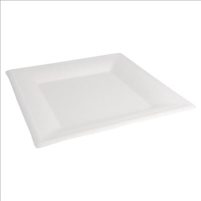 Quel est le format exact de ces assiettes carrées biodégradables pour service de restauration ?