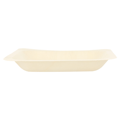 Récipients jetables en bois de peuplier avec finition laminée en pin, au design soigné et naturel.
